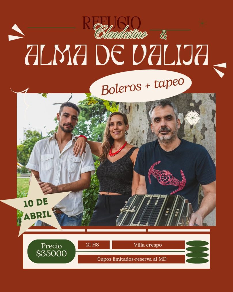 Una noche distinta en Villa Crespo al son del trío Alma de Valija. Tapeo y música en vivo, a puertas cerradas.