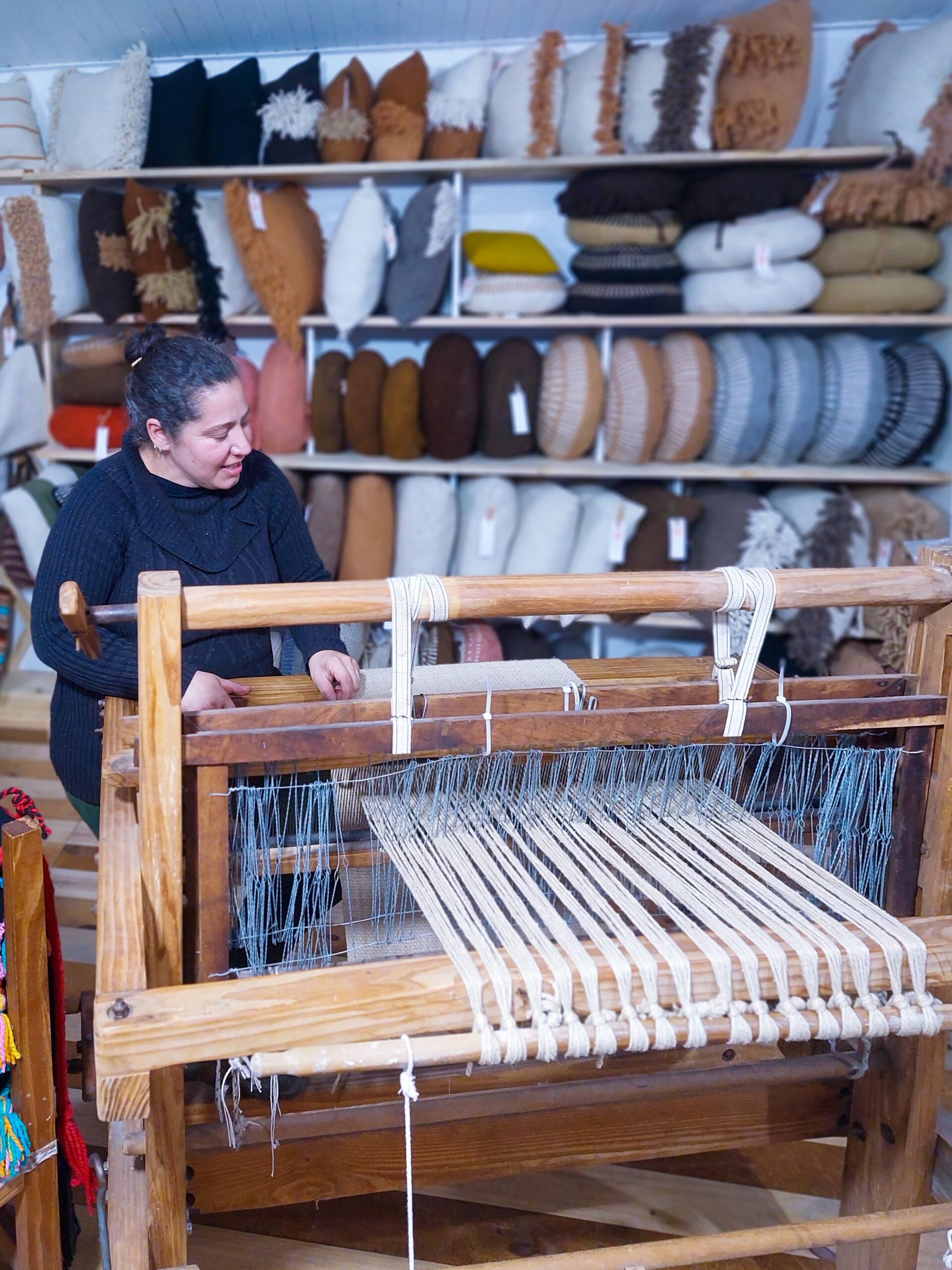 La Ruta del Tejido se encuentra en la peatonal Los Faroles, frente a La Casa del Turista. Son 18 familias organizadas que viven de su trabajo. La fundadora de la cooperativa se llama Andrea Gatti, pero todos la conocen por Fiorina.