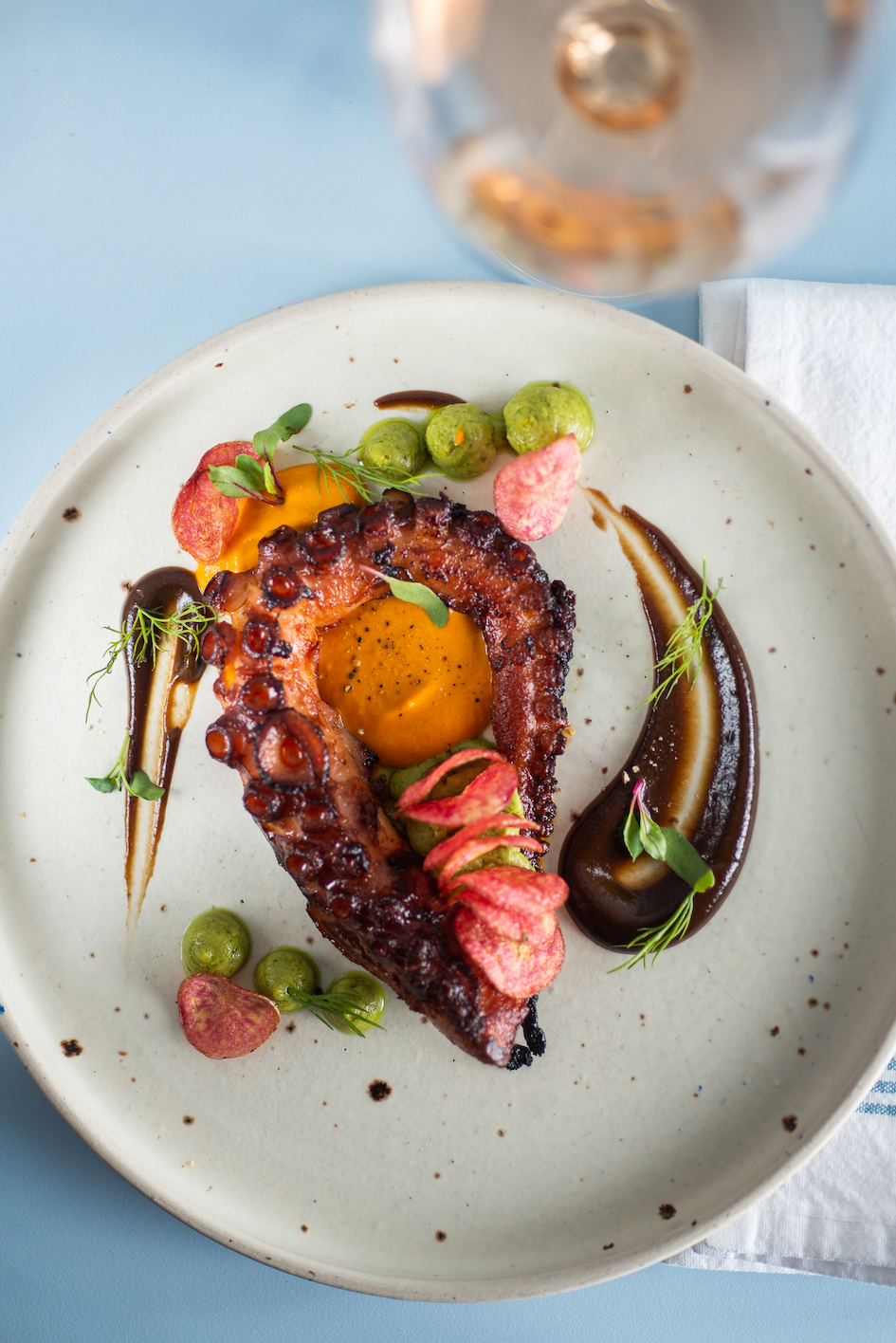 Y si bien es la primera apuesta de Agustín en Buenos Aires, tiene una carrera que lo hizo viajar por más de 20 años de experiencia. Comenzó en el OTT College. Fue director de cocina de Bruni (el restaurante que cerró en 2021, propiedad del músico Fabián «el Zorrito» Von Quintiero).