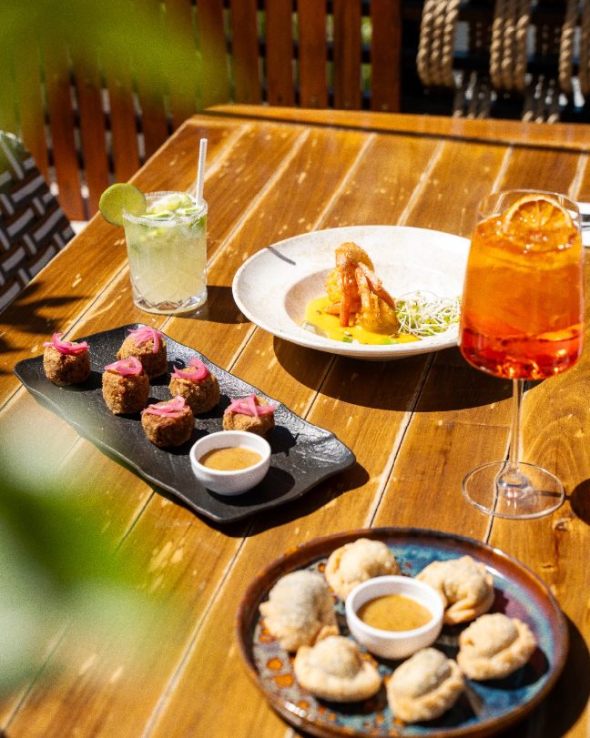 Para beber: cócteles clásicos y de autor servidos en la barra exterior, ideal para acompañar los tapeos y prolongar la estadía al ritmo del DJ de cada noche.