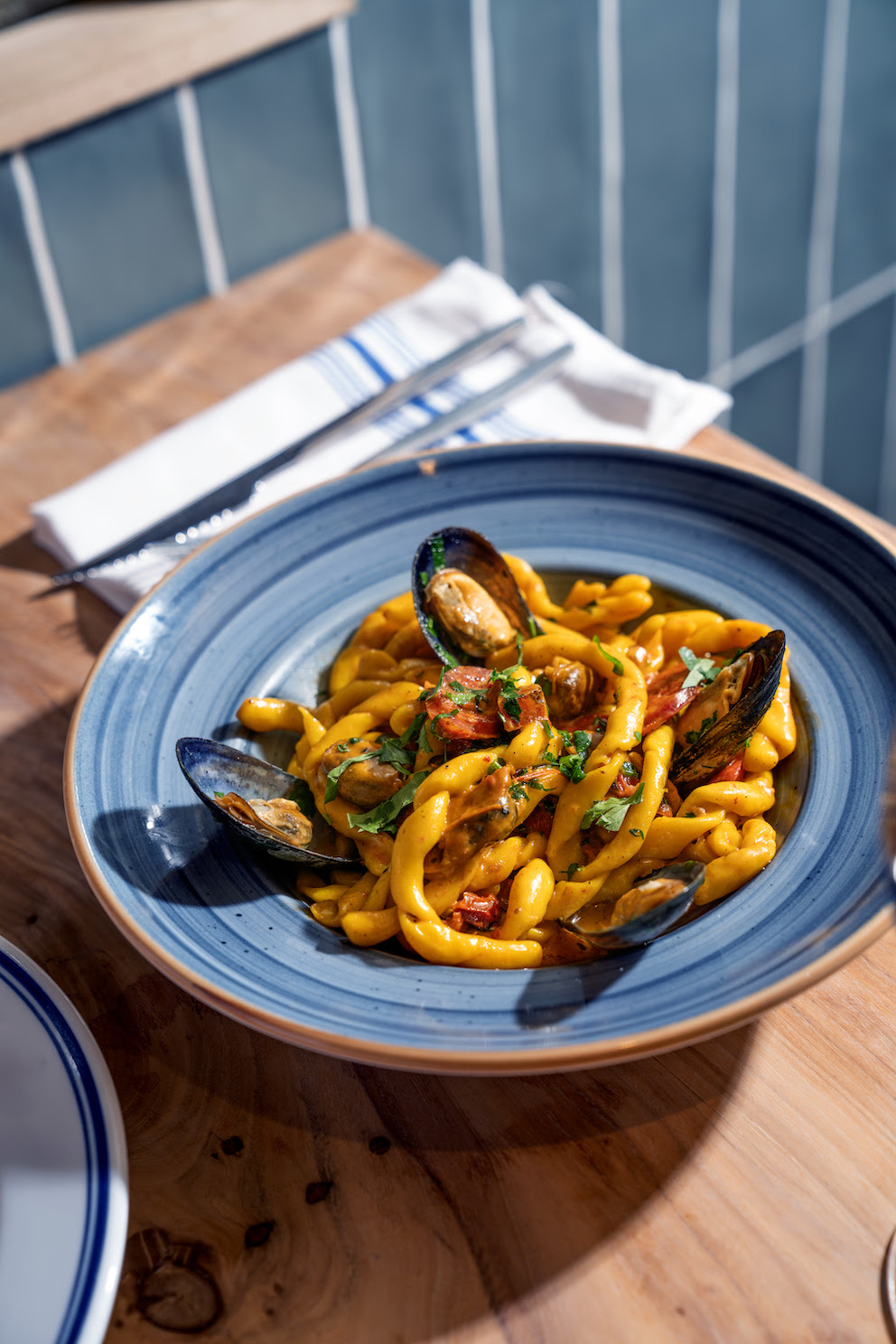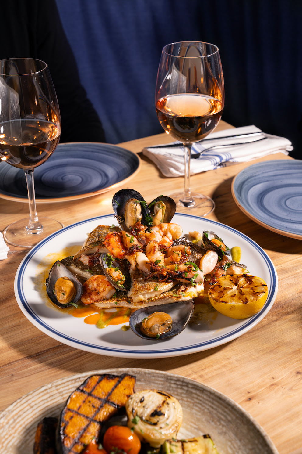 La carta también exhibe preparaciones con atún rojo, chipirones, langostinos, pulpo, calamar, vieiras y mejillones. Algunos de los platos recomendados son los chipirones a la plancha con papas de campo y cebolla caramelizada, los langostinos con panceta ahumada y alioli, la stracciatella con langostinos, chipirones y almendras, y el fritto misto con pesca blanca, langostinos, mejillones y chipirones.