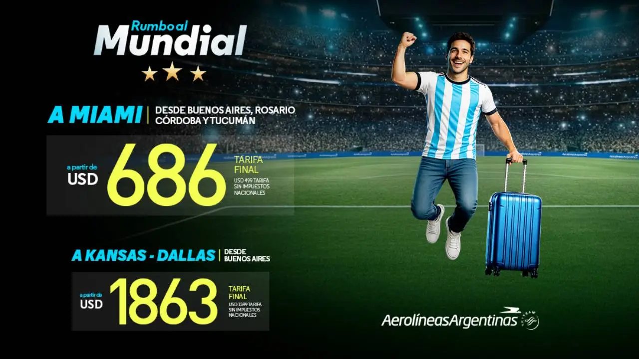 Con tarifas desde USD 686 final a Miami y opciones desde USD 1863 final a Kansas y Dallas, Aerolineas Argentinas tienta a los fanáticos a alentar a la Scaloneta, en las ciudades sede de los partidos de la Selección Argentina.