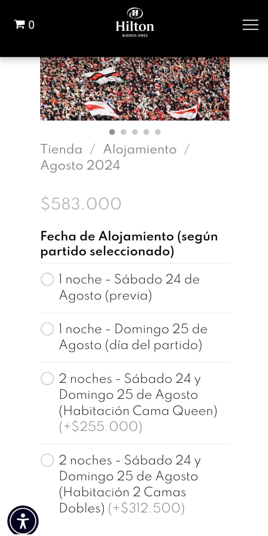 Este paquete estará disponible para todas las fechas en las que River juegue de local, ofreciendo a los huéspedes la oportunidad de disfrutar de las instalaciones y servicios de Hilton Buenos Aires (incluye estacionamiento).