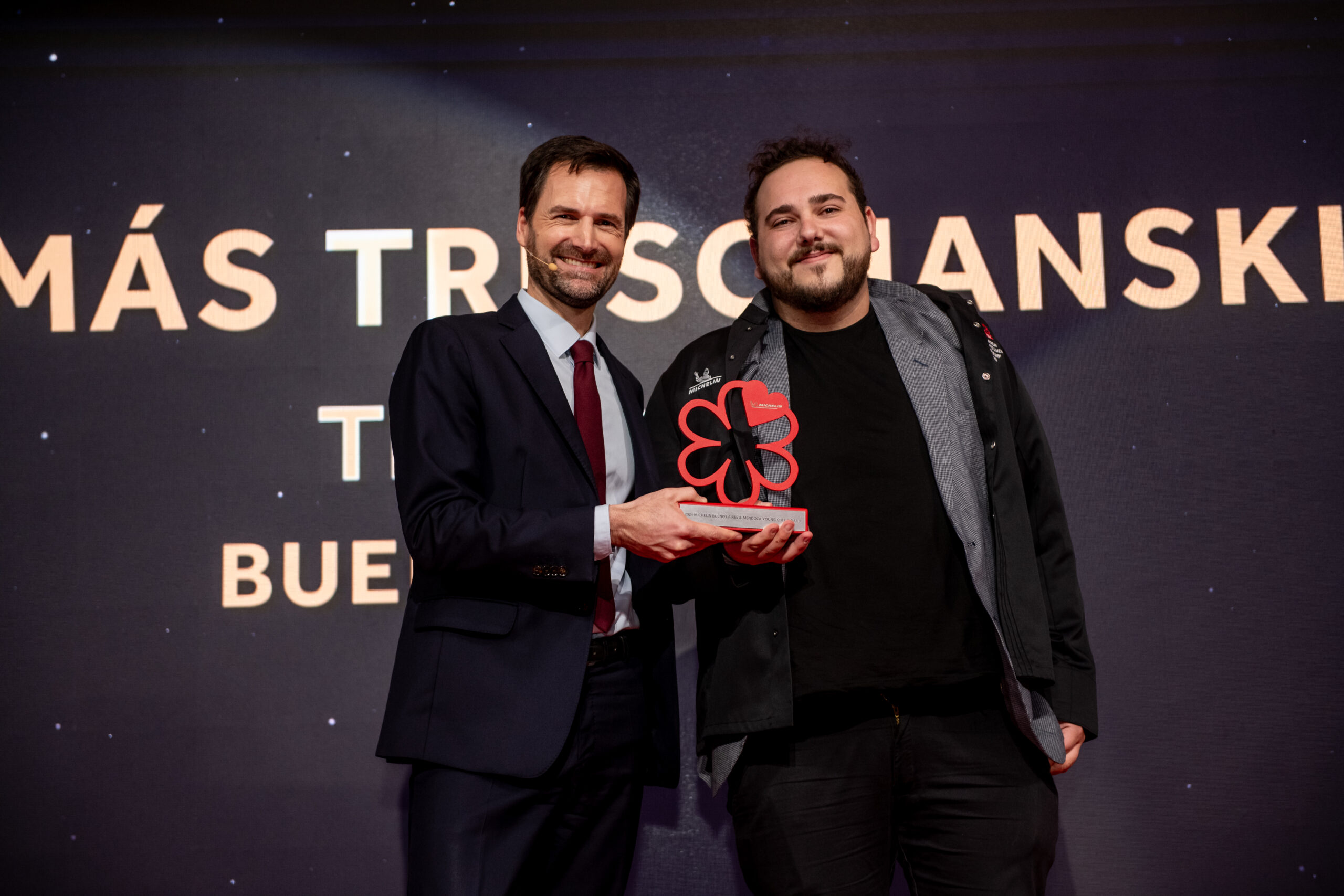 El Premio MICHELIN Joven Chef fue para Tomás Treschanski, chef y propietario del restaurante Trescha. Su talento y potencial han dejado una fuerte impresión en los equipos de selección que disfrutado y evaluado su experiencia . Con sus 26 años, tiene una amplia experiencia internacional, técnica, finura y minuciosidad en cada una de sus creaciones.