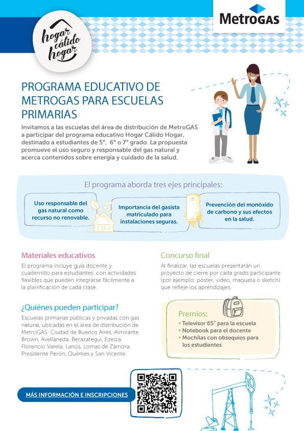 Las escuelas interesadas pueden inscribirse de manera online y participar de esta propuesta de MetroGAS que, año tras año, sigue difundiendo buenas prácticas y contribuye a construir entornos más seguros y sostenibles.