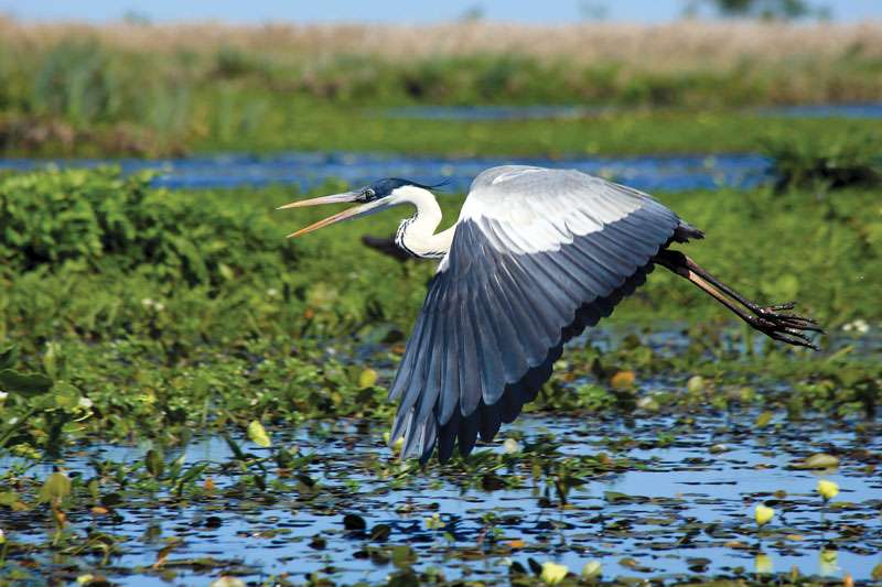 A primera vista, los Esteros del Iberá parecen solo una línea desprolija y delgada de juncos y embalsados que separan el azul plomizo del cielo de las aguas brillantes, que a cierta hora de la tarde, reflejan como espejo las nubes y la puesta del sol. Sin embargo a medida que uno se acerca a sus islas flotantes y se interna en sus canales comienza a descubrir toda su exuberancia. En el extenso humedal habitan ciervos de los pantanos, el venado de las pampas, corzuelas, dos especies de yacaré, monos carayá, carpinchos, el aguará guazú y el lobito de río, entre muchos otros. Como si esto no fuera suficiente, este paraíso es el hogar de más de 350 especies de aves que conviven en los esteros construyendo sus nidos, alimentándose y formando parte de uno de los biomas con mayor biodiversidad de la Argentina.
