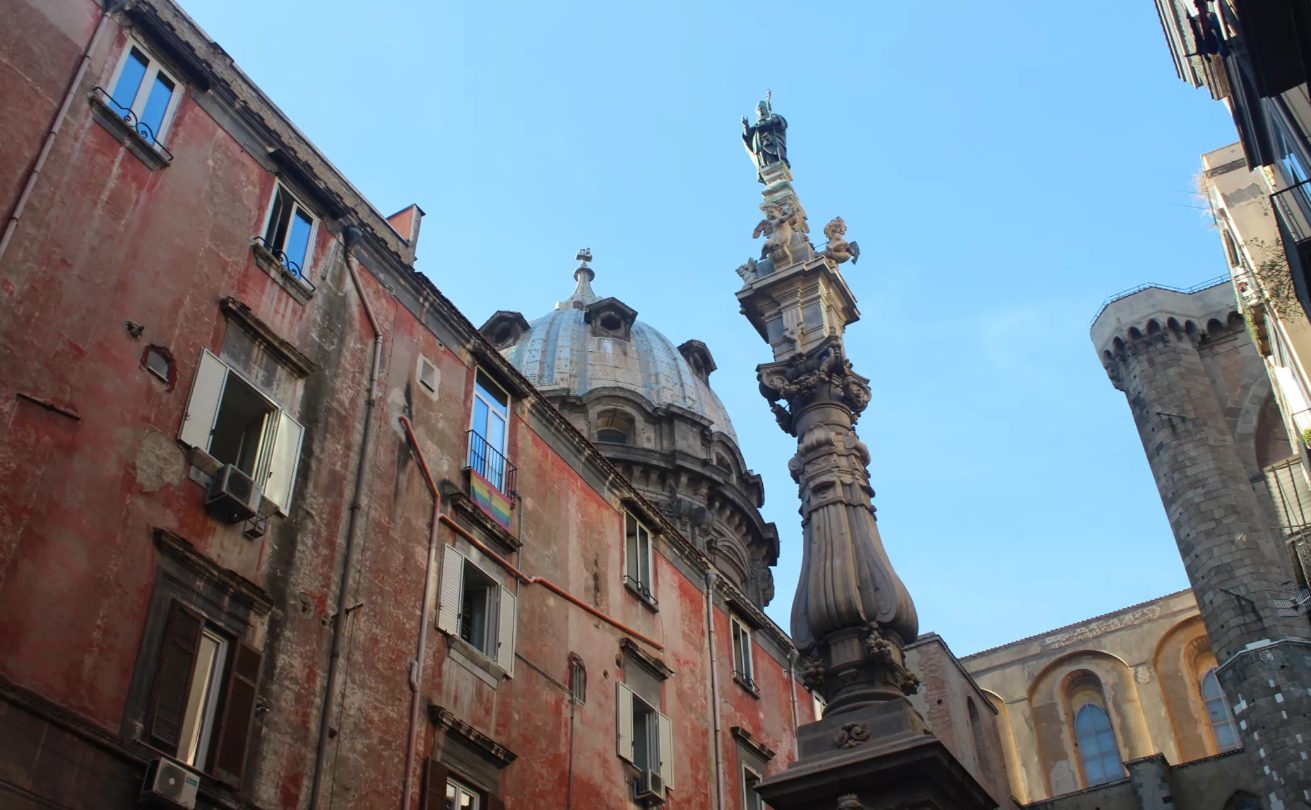 La Iglesia del Gesù Nuovo, con su fachada geométrica y su interior barroco, y el Claustro de Santa Chiara, un oasis de azulejos que centellean bajo el sol, permiten contemplar la perfecta fusión entre arte y devoción.