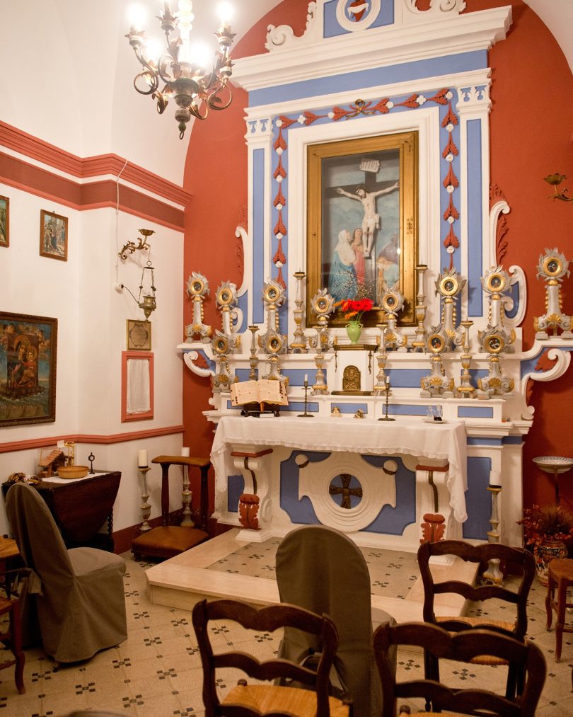 Torre Coccaro forma parte de esta tradición histórica. Su origen se remonta al siglo XVI, cuando fue construida como casale fortificato y torre de avvistamento para vigilar la costa frente a incursiones sarracenas. La torre encalada, visible desde la distancia, integraba una red defensiva que comunicaba mediante señales y palomas mensajeras. En su terraza aún se conserva la antigua colombaia utilizada para enviar mensajes durante periodos de conflicto. Con el paso del tiempo, la estructura se amplió y en el siglo XVII se añadió el Ortus Conclusus, un jardín amurallado que conserva ingeniosos sistemas de irrigación basados en pozos y canales que aprovechaban la gravedad. En 1730 se construyó la cappella, que desde entonces recibe a los pescatori de Savelletri en sus peregrinaciones. Tres siglos después, la misa continúa celebrándose en su interior.